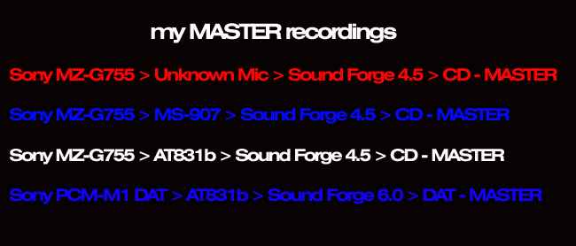 Rig : At831b > Sony MZ-G755 > Sound Forge 6.0 > WAV > FLAC